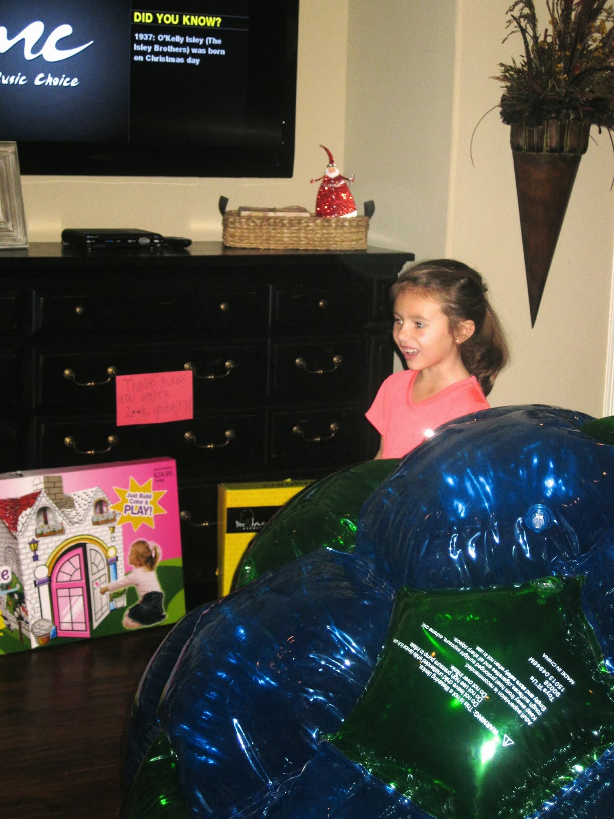 Santa brought this huge inflatable ball that you can roll around in, and it was a huge hit. They've had more fun playing in that thing inside than out.